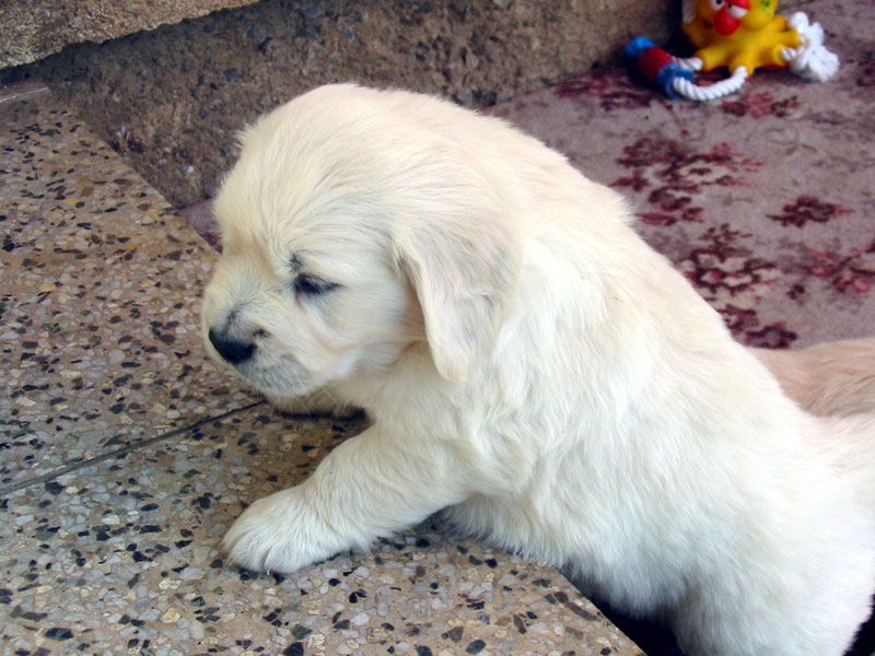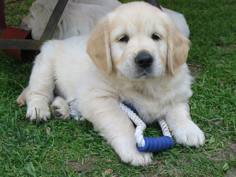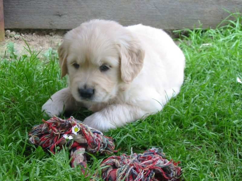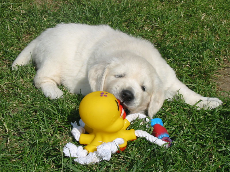 Štěňátkům se už začínají prořezávat zoubky a začínají si hrát.