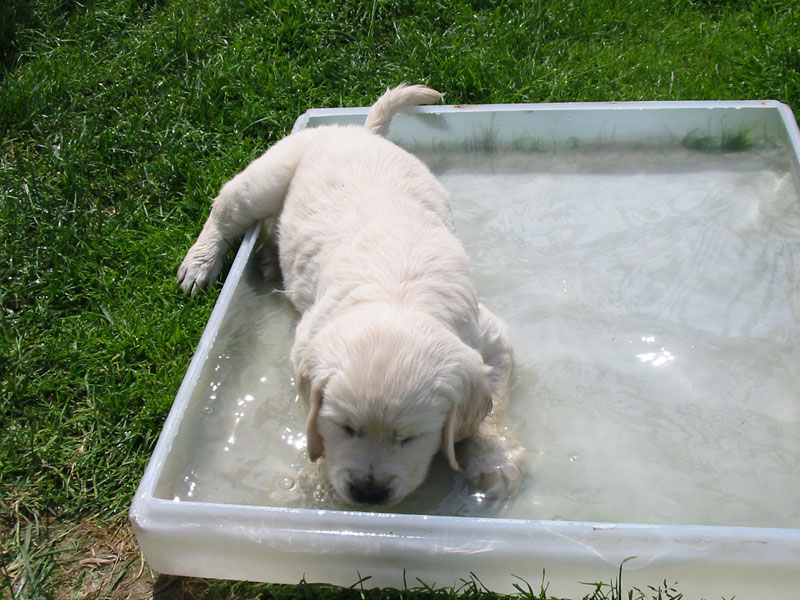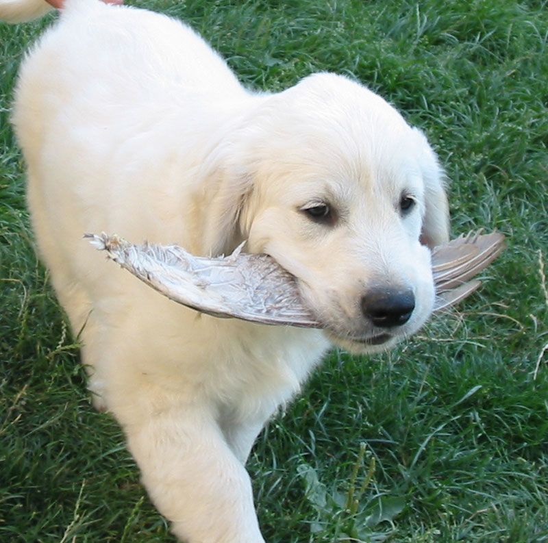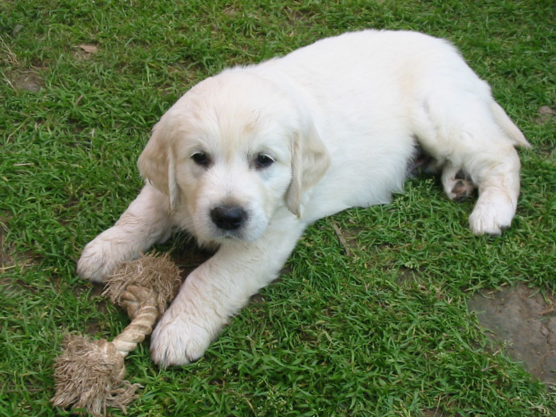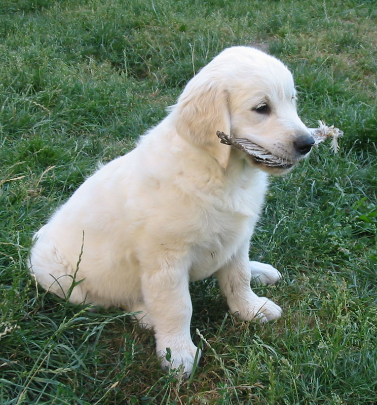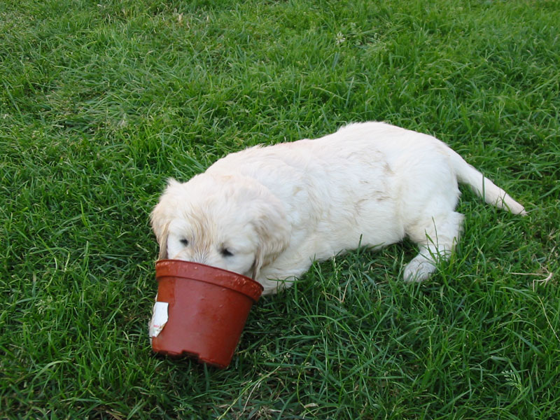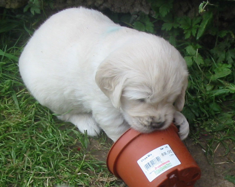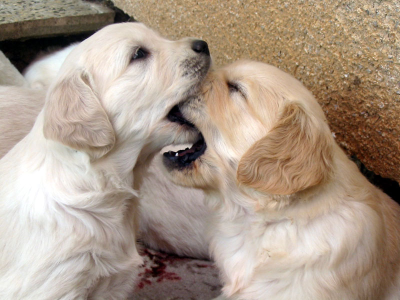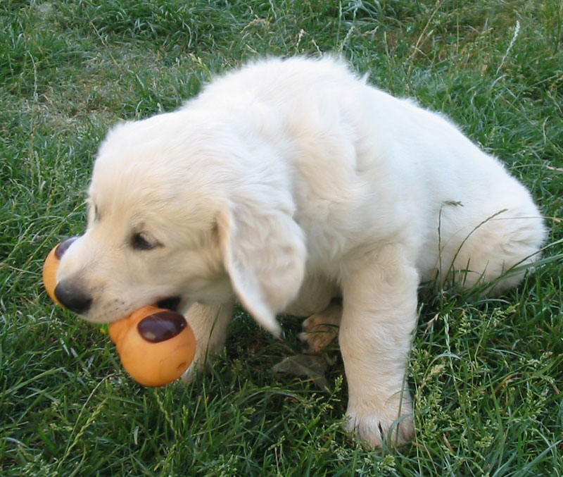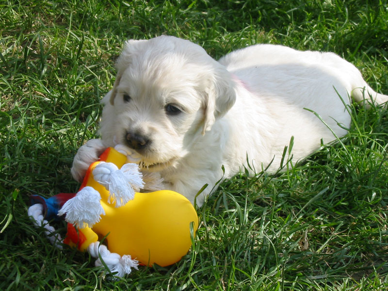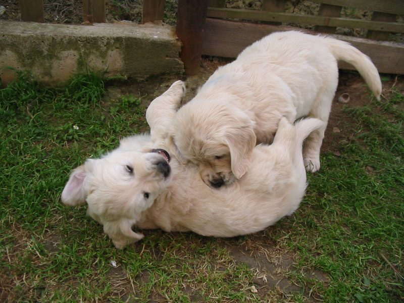 Štěňátkům se už začínají prořezávat zoubky a začínají si hrát.