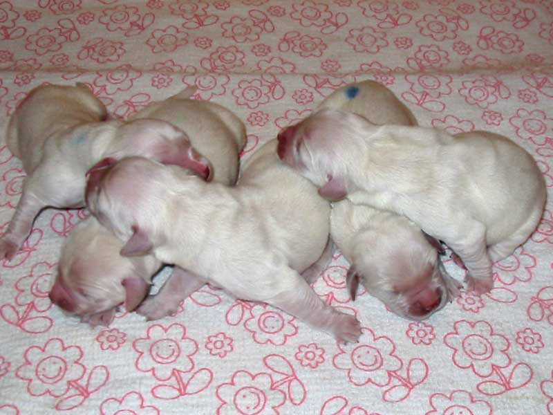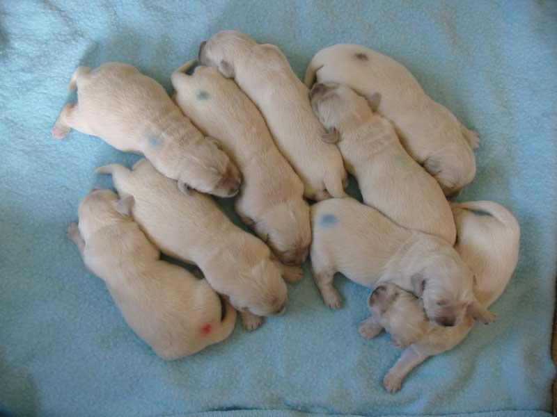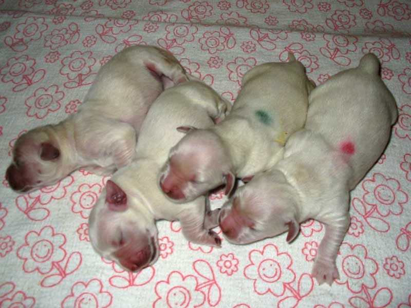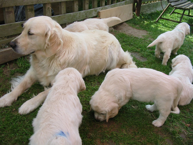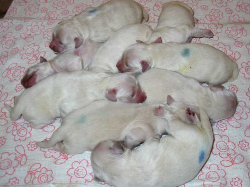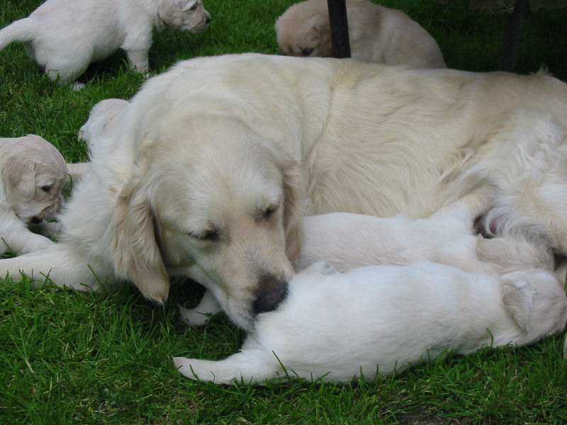 Laura a Cyra jsou vzorné maminky a o svá štěňátka se starají s láskou a péčí. Štěňátka se mají čile k světu a rostou jako z vody. Doopravdy rostou a přibývají na váze z dobrého mateřského mlíčka, kterého obě maminky mají dostatek.
