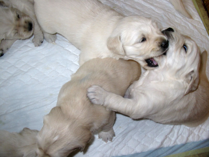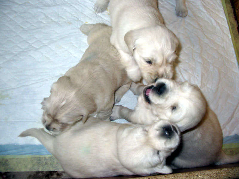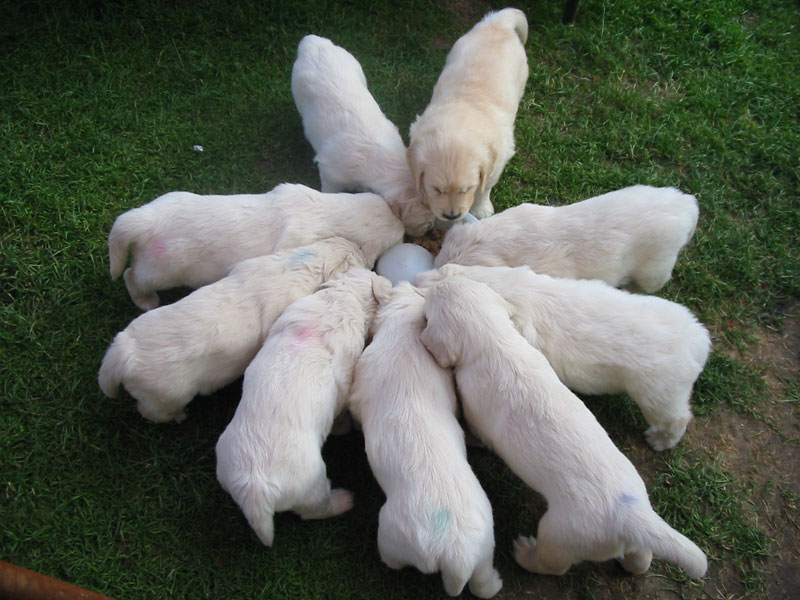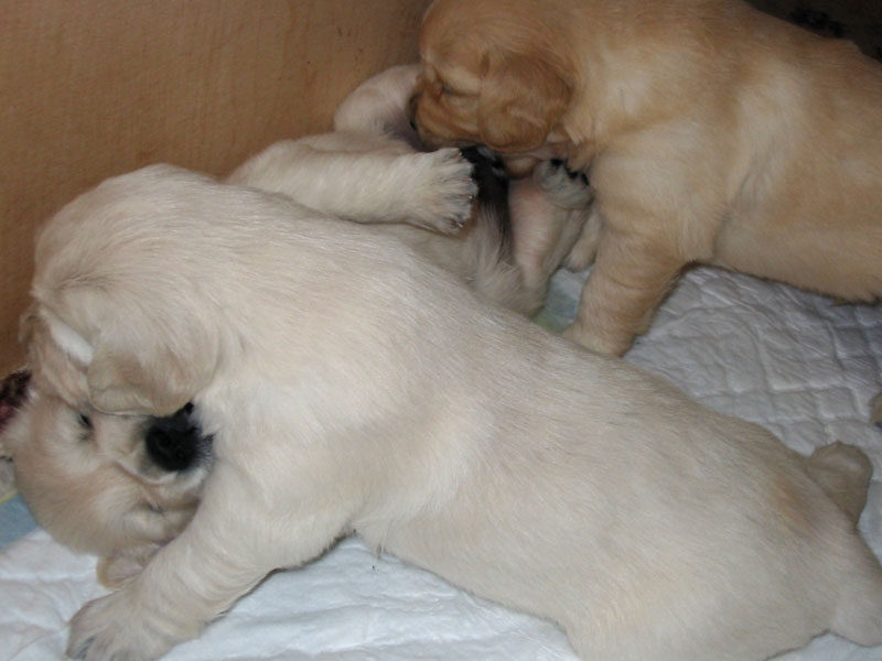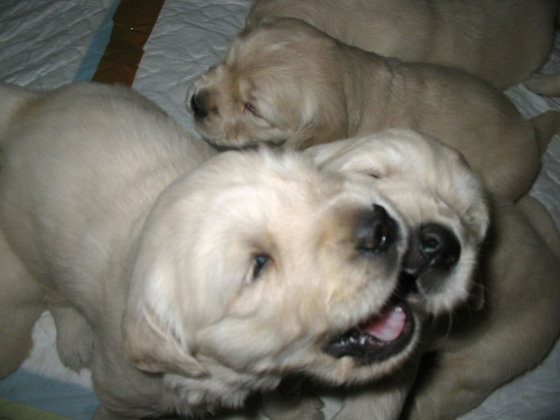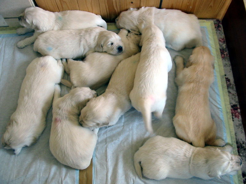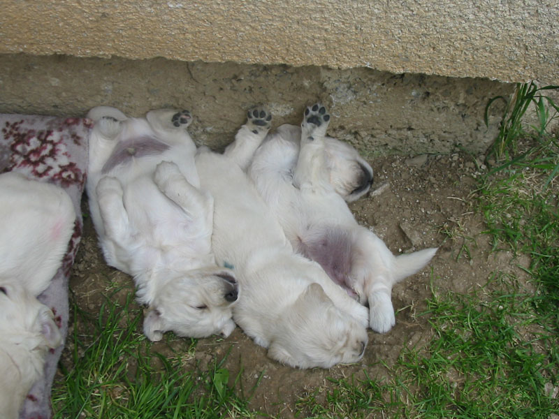 27. června – štěňátkům je 23 a 25 dní. Společné fotky vrhu B a C.