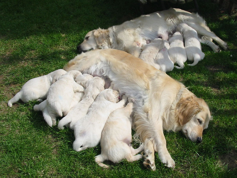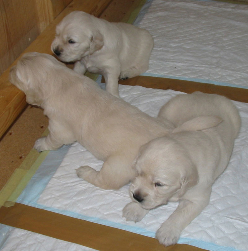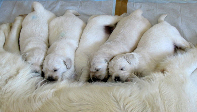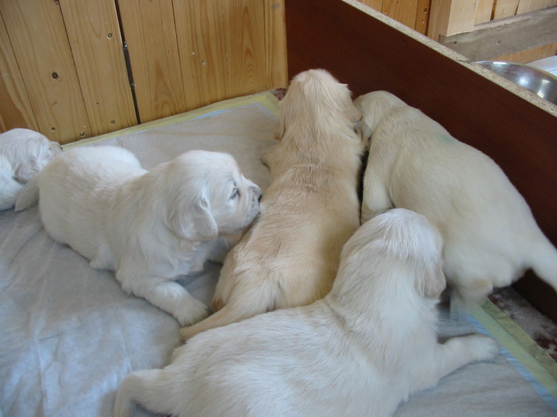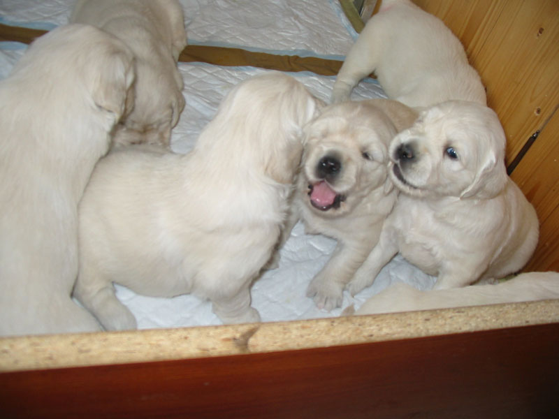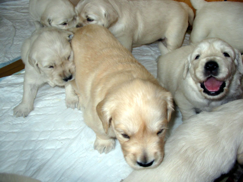 27. června – štěňátkům je 23 a 25 dní. Společné fotky vrhu B a C.